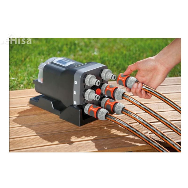 Različna področja vrta se zalivajo zaporedno glede na določen čas zalivanja, z 26,5mm (G 3/4") priključni navoj, komplet s 5 priključki za vodovodno pipo (art. št. 18201) in 3 pokrovi