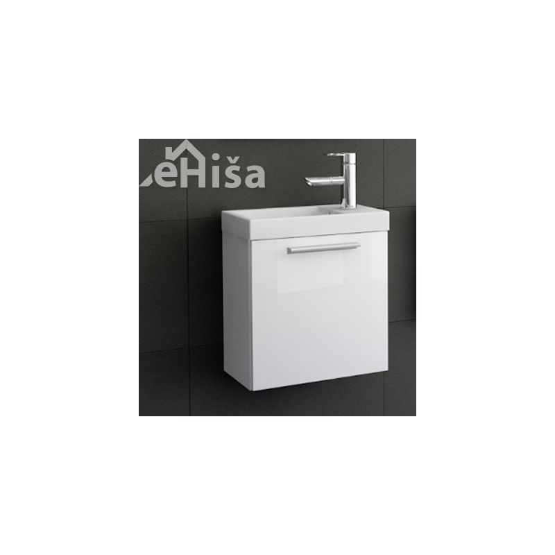 Kopalniška omarica z umivalnikom z vrati spredaj širine 50 cm na voljo v beli (WH) in craft wood (CW) barvi.